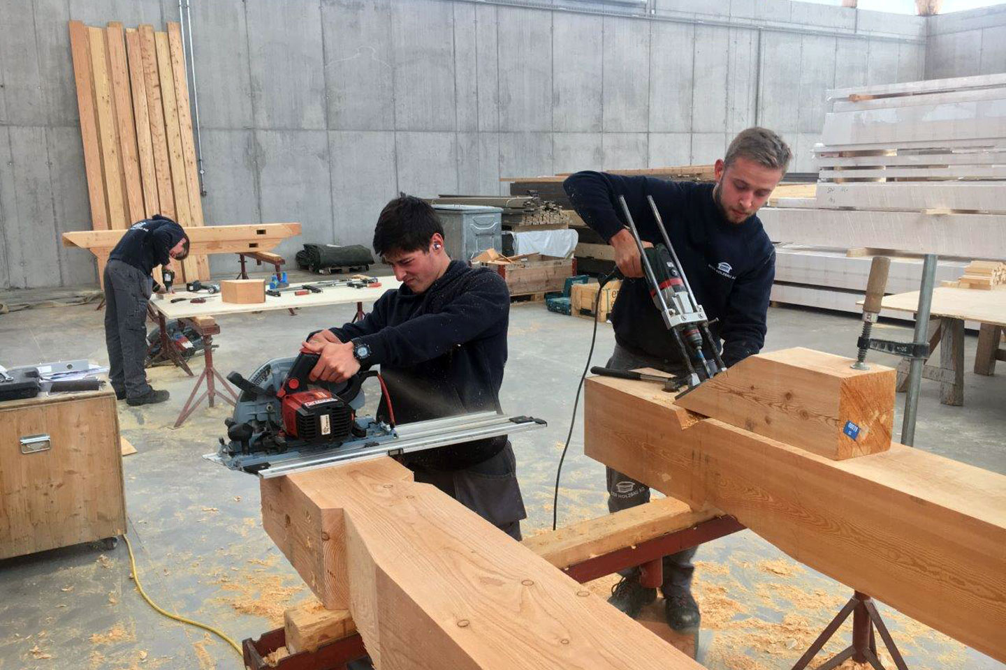Vier Lernende der Beer Holzbau AG arbeiten eine Woche im Graubünden