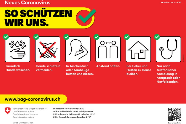 Unsere Werkhalle und unsere Baustellen sind in Betrieb. Wir halten uns an die Vorschriften und die Empfehlungen des BAG. Der Bundesrat vertritt die Meinung, dass die notwendigen Sicherheitsmassnahmen grundsätzlich ohne Schliessungen eingehalten werden können.