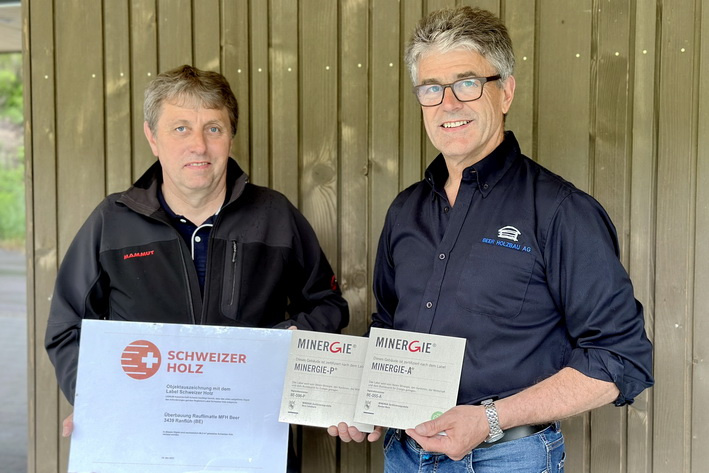 Übergeben wurden die Zertifikate von Jürg Rothenbühler, Präsident von Lignum Bern. Ebenfalls wurden die Objekte mit dem Nachweis des CO2-Instituts Schweiz für die gespeicherte Menge an CO2 ausgezeichnet.