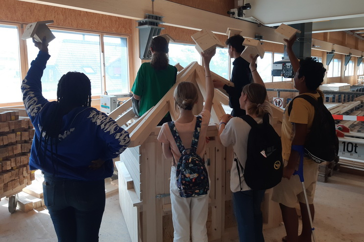 Bei uns in der Firma hat sich die siebte Klasse in zwei Gruppen aufgeteilt und sich in zwei Stunden mit dem Beruf Zimmerman / Zimmerin EFZ befasst. Dabei haben sie einen Rundgang gemacht und bereits die ersten Arbeiten ausgeführt. Die Schüler/innen hatten die Möglichkeit mit der Unterstützung unseres Lehrlingsverantwortlichen Roger Gloor und dem Lernenden Severin Schütz ein kleines Bienenhotel zu bauen. Das Interesse am Beruf konnte bei einigen Schülern/innen geweckt werden.
