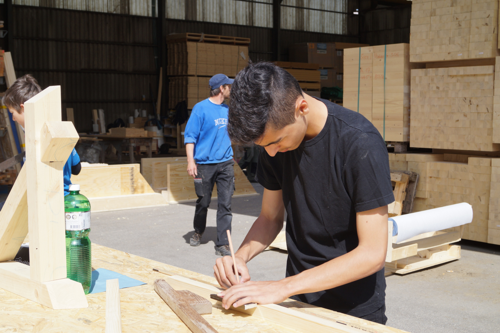 Bei Beers lernten sie den Beruf Zimmerin/Zimmermann und Holzbearbeiterin/Holzbearbeiter kennen. Aufgeteilt in zwei Gruppen besuchten 10 Schüler unseren Betrieb. In eineinhalb Stunden erhielten die Schüler einen kurzen Einblick in den Berufsalltag vom Zimmermann. Unser Lehrlingsverantwortlicher Andreas Läderach und unser Lehrling Manuel Zürcher stellten ihnen unsere Holzbaufirma vor und informierte sie über die vielfältigen Tätigkeiten sowie die Aus- und Weiterbildungsmöglichkeiten der Zimmerin/Zimmermann und Holzbearbeiterin/Holzbearbeiter. Danach folgte ein Rundgang durch den Betrieb. Auch praktisch konnten die Schüler Hand anlegen. Unter fachkundiger Anleitung zimmerten alle ein Paar Stelzen. Diese durften sie natürlich mit nach Hause nehmen. Mit einer Gesprächsrunde in der Aula Schule Dennigkofen endete die zweite Berufstour 3072. Ein interessanter und erfolgreicher Tag für alle Beteiligten.