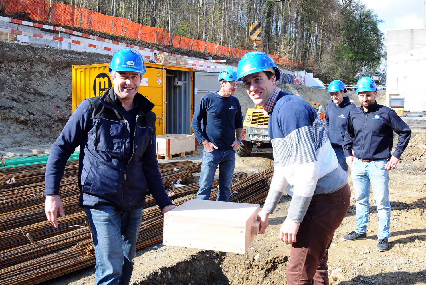 Als Zeitzeugnis und als Akt für einen gelungenen Start des grossen Bauvorhabens, haben die Geschäftleitung und die Familie Beer Pläne, Unterlagen, Symbole und Glückwünsche in einer Buchenholz-Kiste, in das Fundament einbetoniert. "Denn das Erstellen eines Bauwerks braucht immer einen guten Grund auf gutem Grund", so Heinz Beer. Auch die Wahl der Holzart für die Kiste ist dabei nicht etwa zufällig. Das FachWerk wird anstelle von Stahlstützen auf tragenden Elementen aus Buchenholz konstruiert.