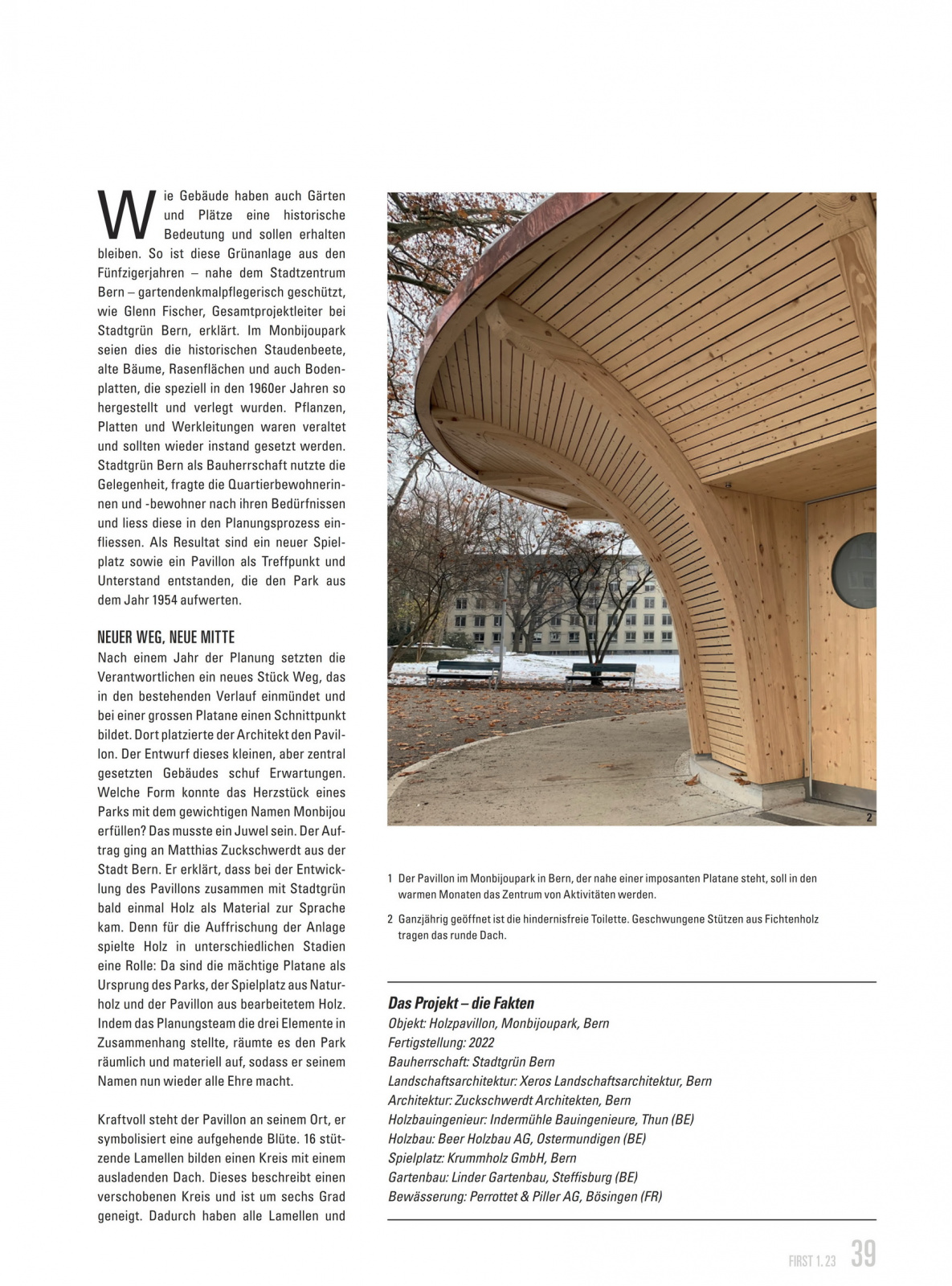 Seit kurzem zieht im Monbijoupark der Stadt Bern ein schmucker Pavillon die Aufmerksamkeit auf sich. Er ist im Zuge der Parksanierung entstanden und bietet für das Quartier Mattenhof-Weissenbühl einen neuen Begegnungsort.