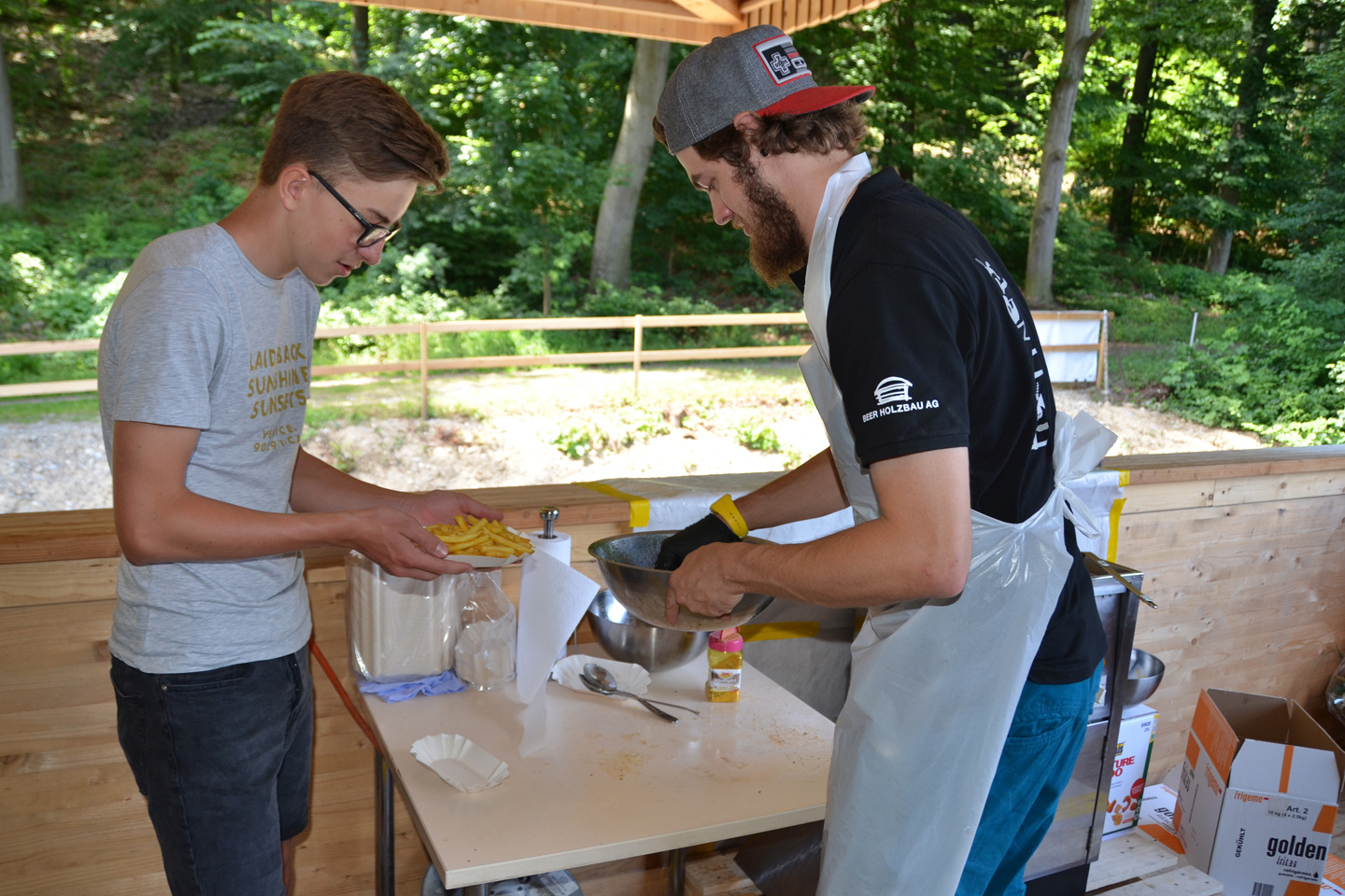 Am Samstag und Sonntag öffneten Beers das eindrucksvolle Holzgebäude für die Bevölkerung. Nebst der Besichtigung des Gebäudes selbst wurden weitere Attraktionen geboten. «Flugo», seinerseits Speedcarver, schnitzte zu lauter Rockmusik mit einer Motorsäge kleine Holzbären aus Holzstämmen. Im «Märli-Egge» konnten die Kinder den Geschichten von Elisabeth Tschudi lauschen. Interessierte wurden an kurzen, informativen Vorträgen über die Entstehungsgeschichte und die Machart des FachWerks informiert.