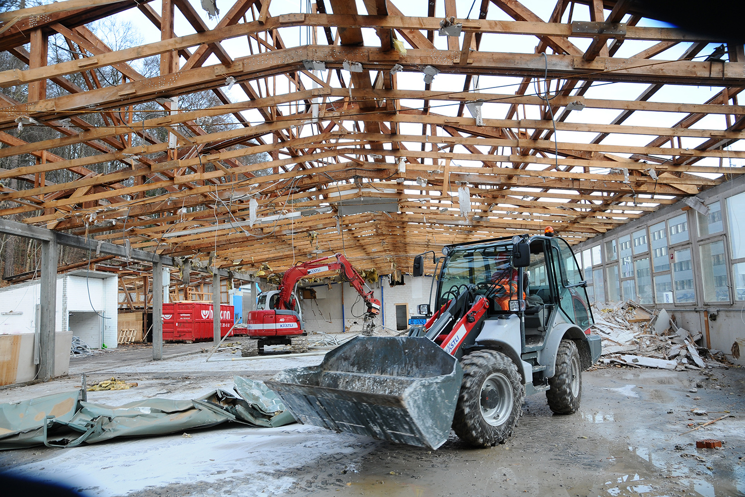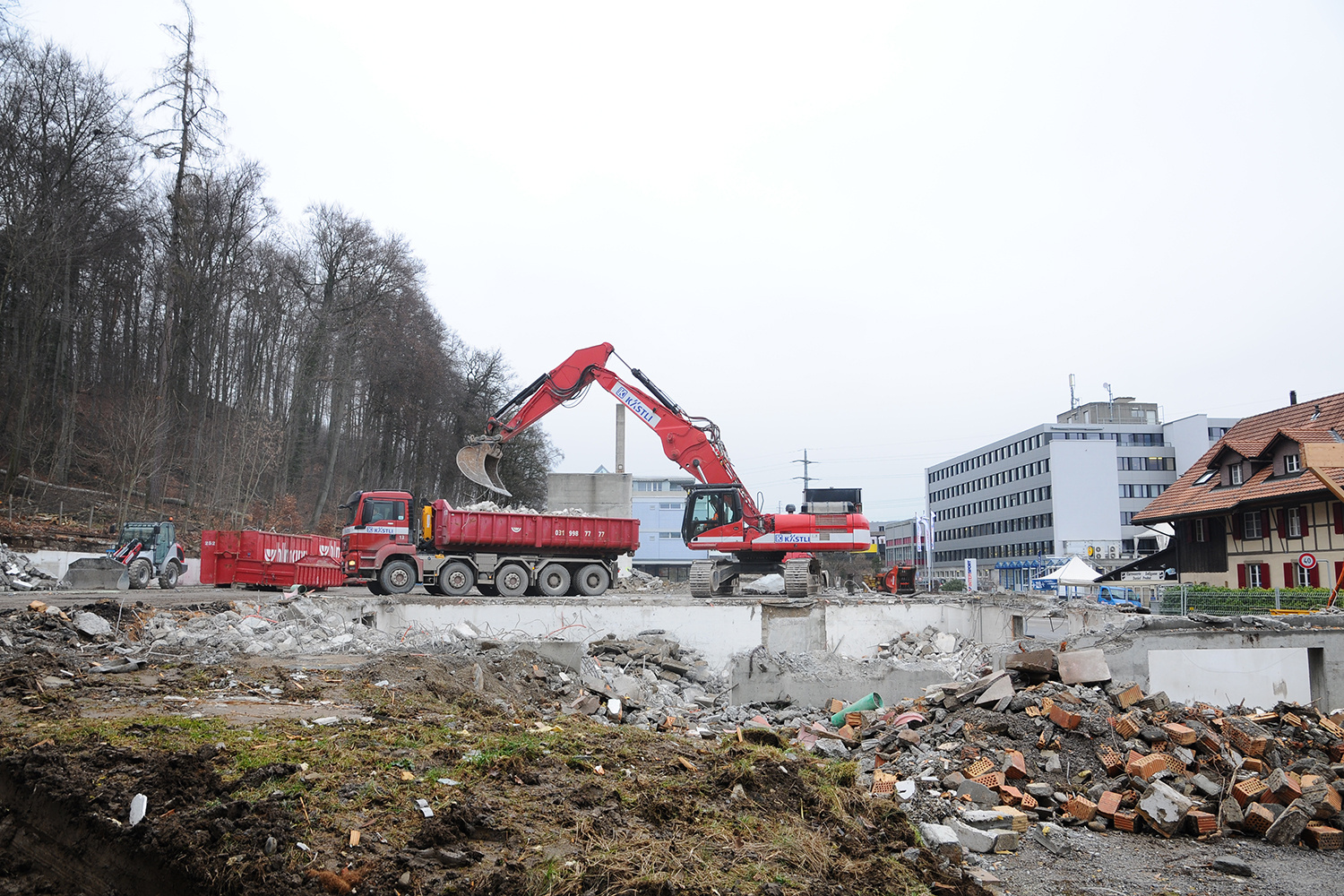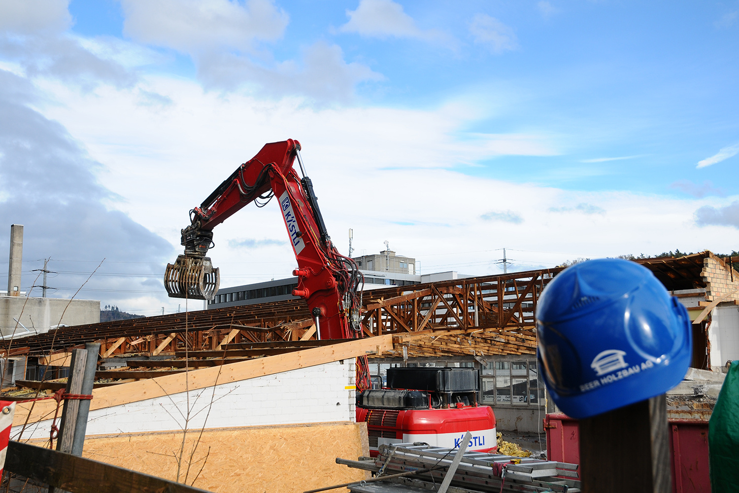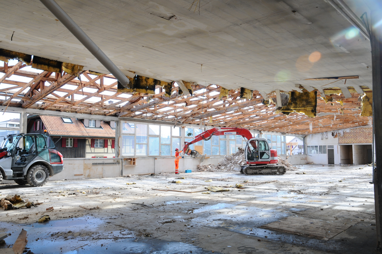 Anfangs Februar begann der Rückbau des alten Gebäudes. Schrittweise verschwanden die Büros und die Produktionshalle. Darauf folgte der Voraushub des Untergeschosses.