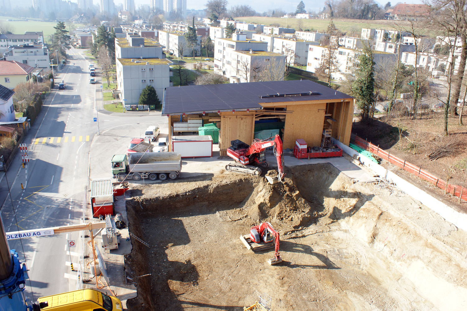 Der Aushub für das Untergeschoss wurde fertig gestellt. Insgesamt 781 Lastwagen waren nötig, um 9375m3 Material weg zu transportieren.