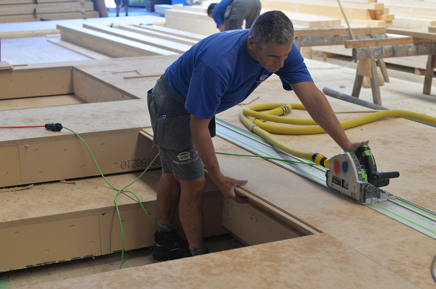 Immer ein Schritt voraus – die Produktion. Im hauseigenen Werk werden die Elemente vorbereitet, die gemäss der Planung als nächstes verbaut werden.