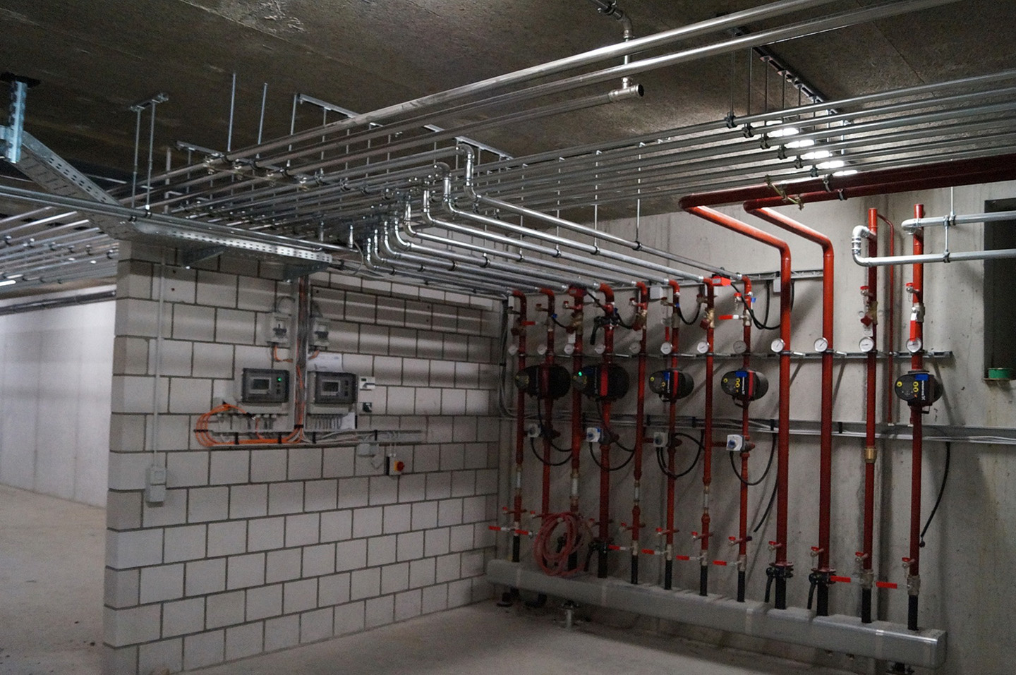 Die Heizverteilung ist fertiggestellt worden und die Bodenheizung zum Austrocknen des Unterlagbodens konnte in Betrieb genommen werden.
