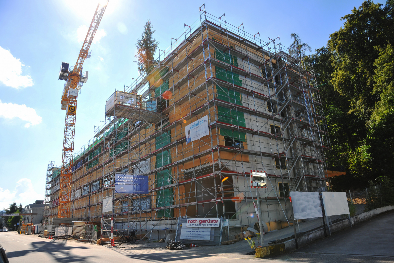 Die Fassaden werden gerostet und die Unterkonstruktion für Photovoltaik fertiggestellt.