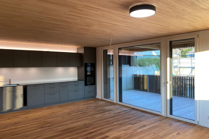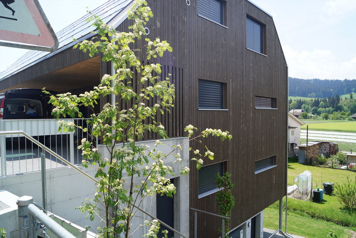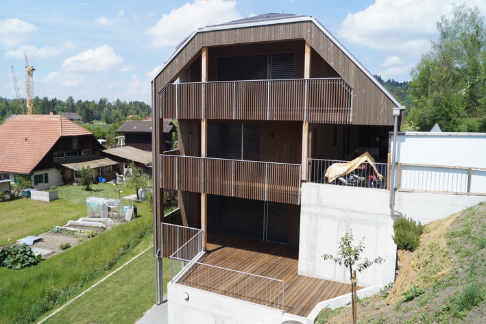 In Ranflüh sind direkt am Bach vier topmoderne Mehrfamilienhäuser mit Aussicht auf die sanften Hügel des Emmentals entstanden.