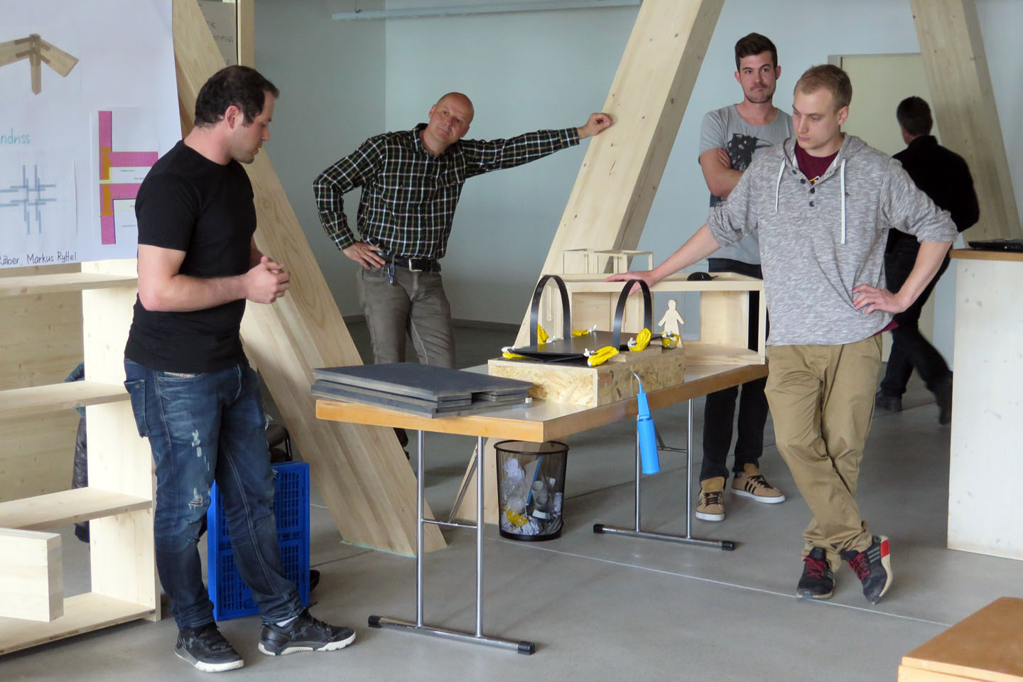 Eine Woche lang bezogen 9 Studenten der Berner Fachhochschule für Architektur, Holz und Bau das FachWerk der Beer Holzbau AG.