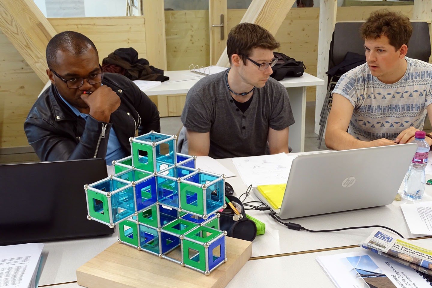 Ziel der Projektwoche war es, ein Raummodul zu entwickeln, welches unterschiedlichen kurzfristigen Verwendungszwecken dienen kann –zum Beispiel bei Flüchtlingsbauten. Weiter sollten sich die Module beliebig stapeln und verbinden lassen können.