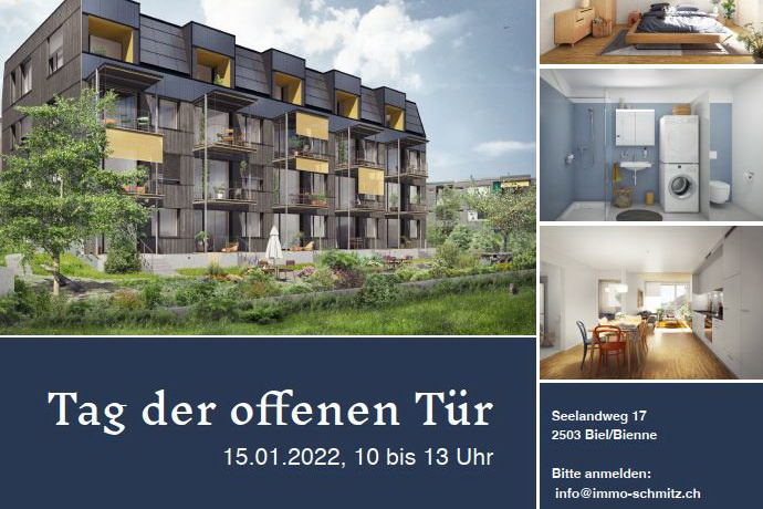 Der Neubau am Seelandweg in Biel ist fertiggestellt und die ersten Bewohnerinnen und Bewohner konnten bereits im Dezember einziehen. Das in Holzbauweise erstellte Mehrfamilienhaus, das sich voll und ganz dem Gedanken der Nachhaltigkeit verpflichtet hat, bietet noch freie Wohnungen und kann besichtigt werden:
