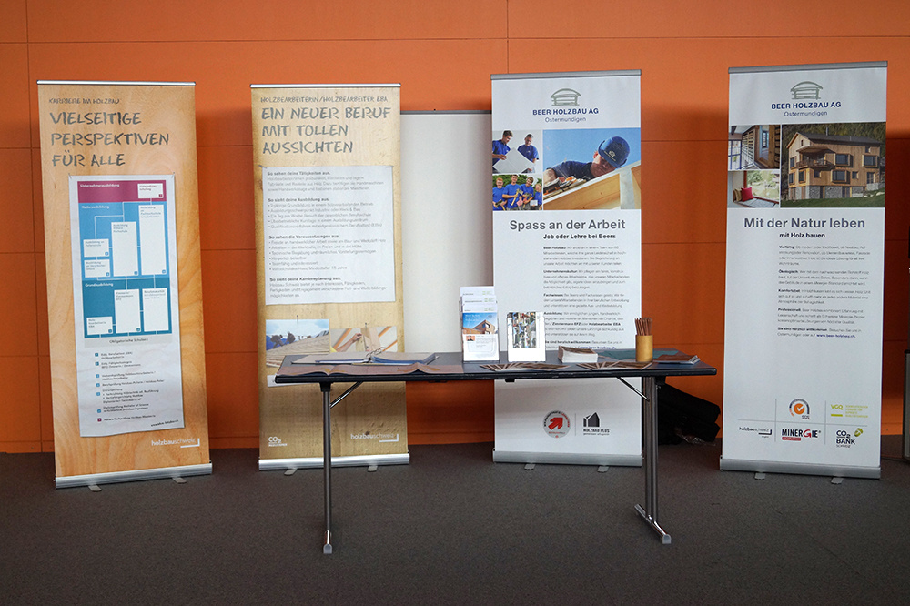 Aufgeteilt in zwei Gruppen besuchten 12 Schüler unseren Betrieb. In eineinhalb Stunden erhielten die Schüler einen kurzen Einblick in den Berufsalltag vom Zimmermann. Unser Lehrlingsverantwortlicher Andreas Läderach stellte ihnen unsere Holzbaufirma vor und informierte sie über die vielfältigen Tätigkeiten sowie die Aus- und Weiterbildungsmöglichkeiten des Zimmermanns.
