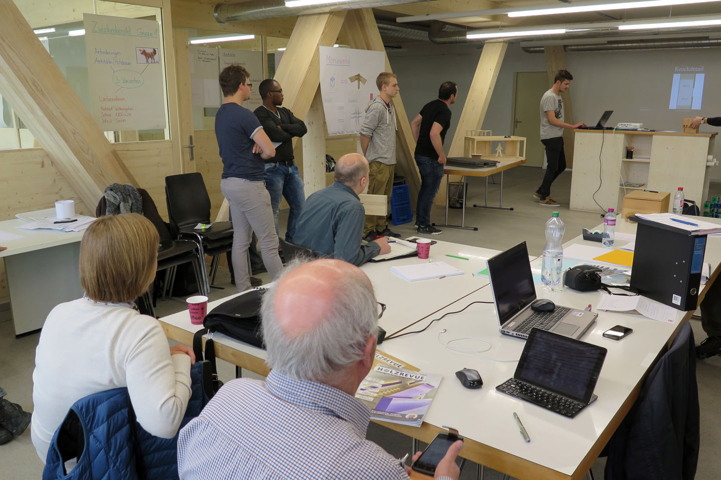 Eine Woche lang bezogen 9 Studenten der Berner Fachhochschule für Architektur, Holz und Bau das FachWerk der Beer Holzbau AG.