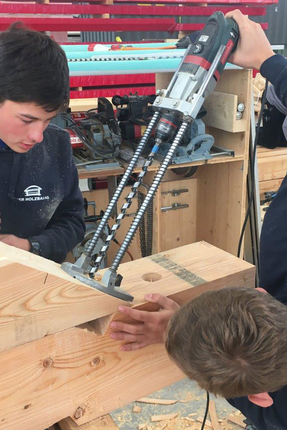 Vier Lernende der Beer Holzbau AG arbeiten eine Woche im Graubünden