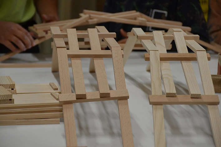Am Samstag öffneten wir bereits um 9.00 Uhr unsere Tore für die breite Öffentlichkeit. Die Besucherinnen und Besucher erwartete ein vielfältiges Programm: In der Produktionshalle lockte ein Tinyhouse und die wachsende Leonardobrücke die Neugierigen an, während ein spannender OL quer durch unser Firmengebäude führte und Wissenswertes über unsere Arbeit und unsere Geschichte vermittelt wurde. Im Kino gab es spannende Holzgeschichten, in der Lehrlingswerkstatt konnte man das Tinyhous mit einer VR-Brille erleben, und auch die Festwirtschaft lud zum Verweilen ein.