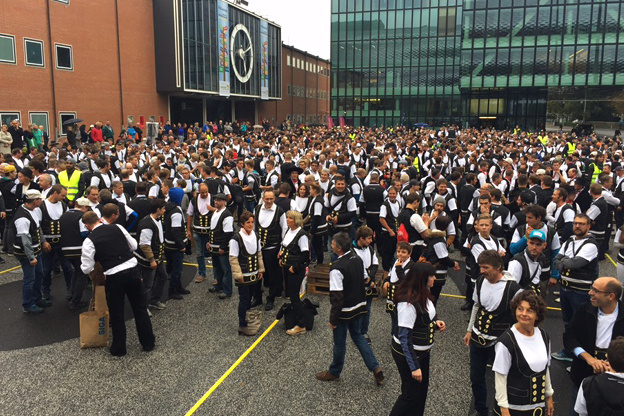 Am Freitag, 14. Oktober 2016 um 18.30 Uhr konnten die Verantwortlichen des Guinnessbuches der Rekorde an der Holz Basel die frohe Botschaft verkünden: Der neue Weltrekord im Zimmermannsklatsch mit der sensationellen Anzahl von 1'306 Zimmerinnen und Zimmerern ist gelungen. Der bisherige Rekord lag bei 848 Teilnehmenden.
