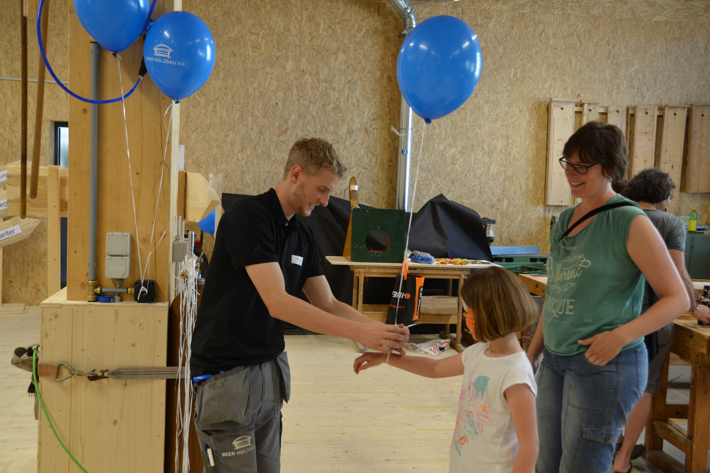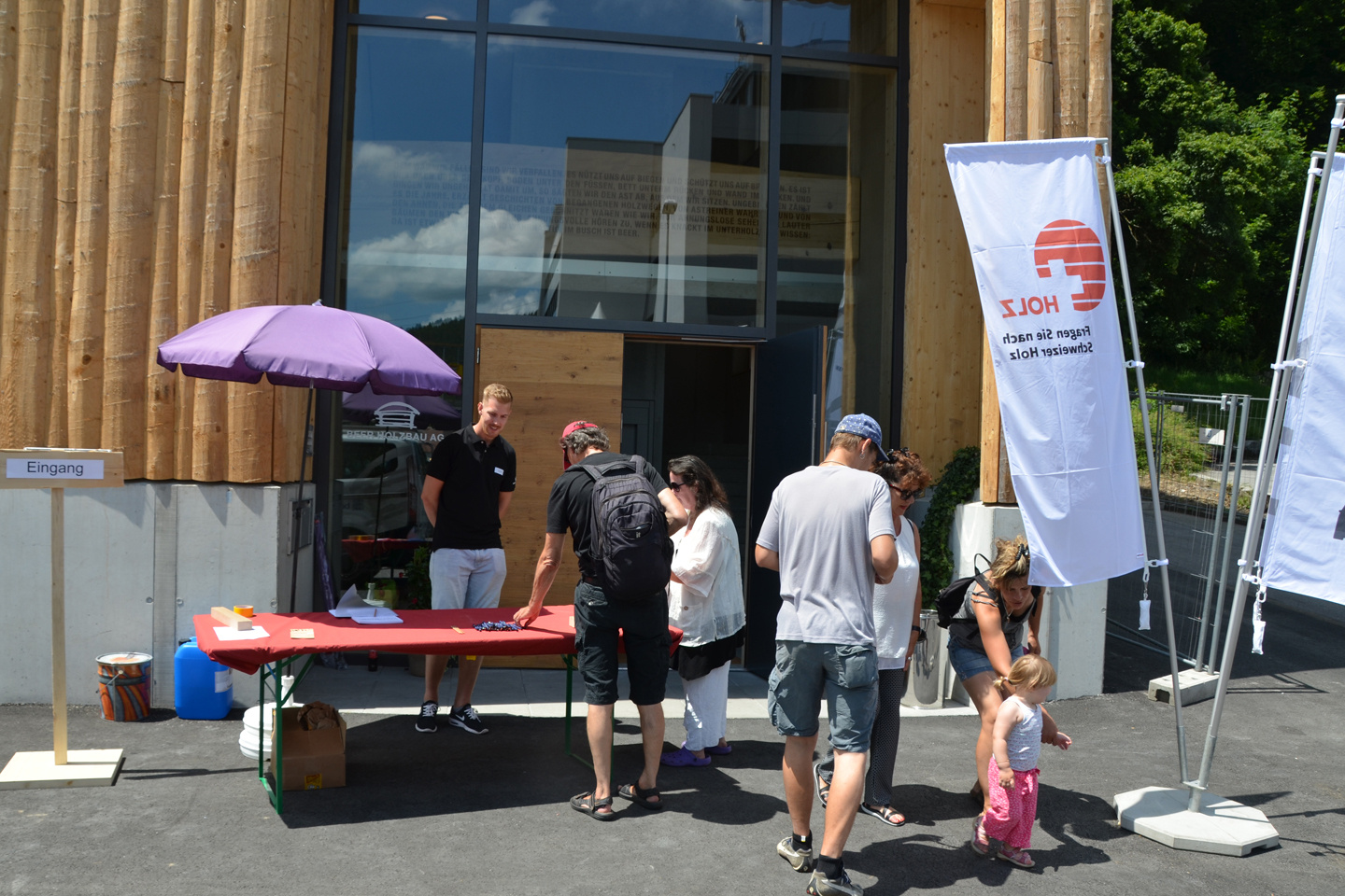 Am Samstag und Sonntag öffneten Beers das eindrucksvolle Holzgebäude für die Bevölkerung. Nebst der Besichtigung des Gebäudes selbst wurden weitere Attraktionen geboten. «Flugo», seinerseits Speedcarver, schnitzte zu lauter Rockmusik mit einer Motorsäge kleine Holzbären aus Holzstämmen. Im «Märli-Egge» konnten die Kinder den Geschichten von Elisabeth Tschudi lauschen. Interessierte wurden an kurzen, informativen Vorträgen über die Entstehungsgeschichte und die Machart des FachWerks informiert.