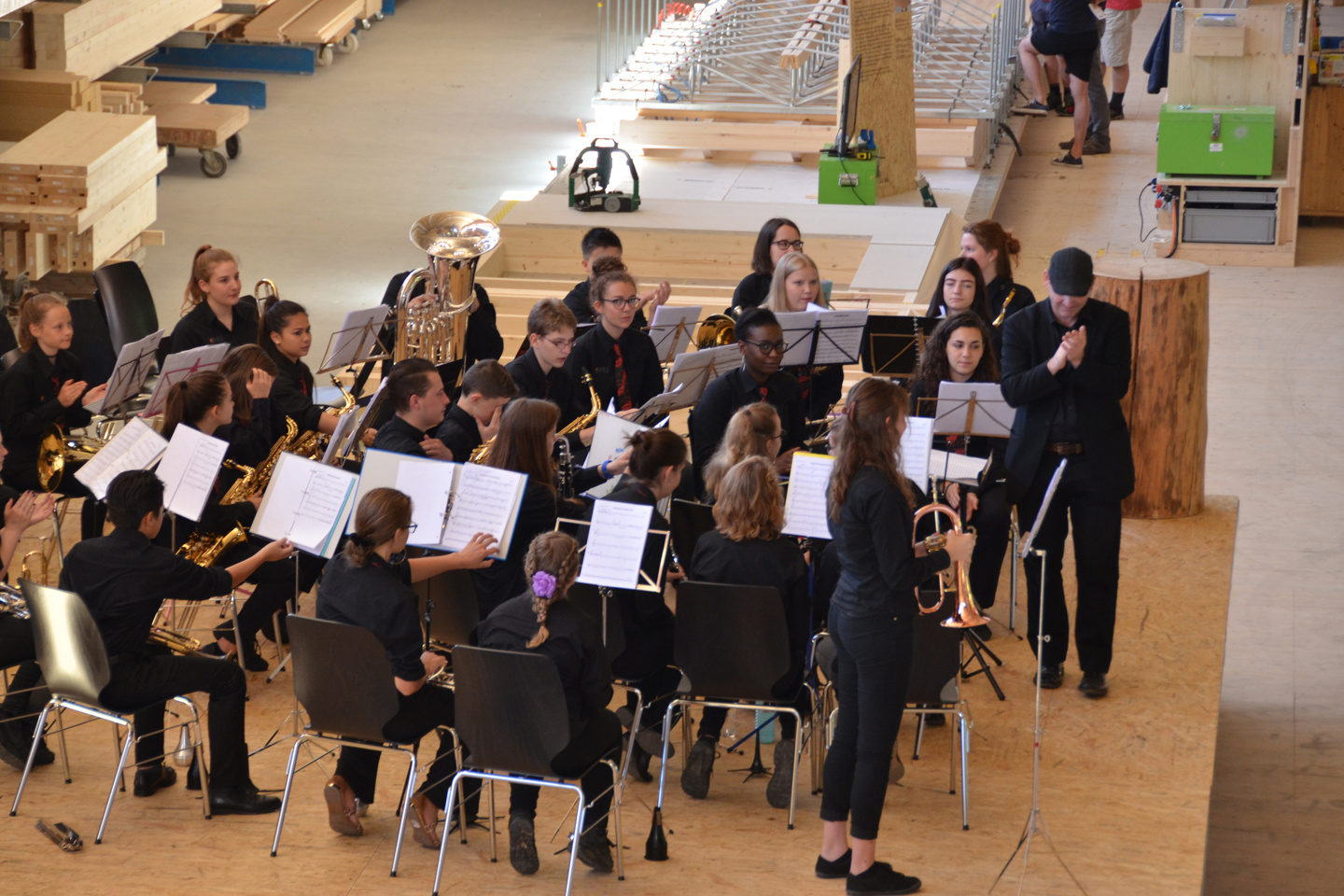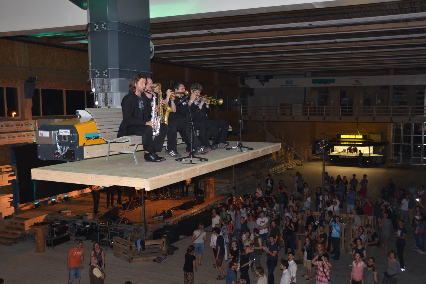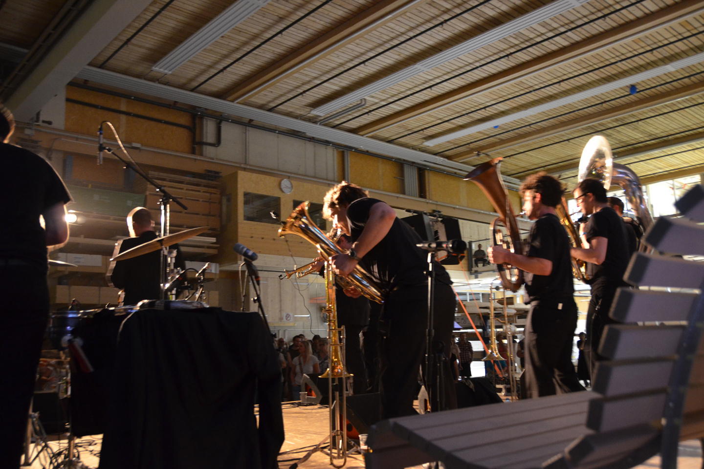Am Samstagabend wurde das FachWerk von den Klängen der Berner Band Traktorkestar gefüllt. Die Produktionshalle verwandelte sich kurzerhand in eine Konzerthalle. Die Besucherinnen und Besucher feierten zu den Klängen der Bläser-Formation, die mit «Lost Boy&Suicide Girl» die Hitparade stürmte. Musikalisch ging es am Sonntagmorgen direkt weiter. Die Jugendmusik Ostermundigen spielte ein Matinée-Konzert und gab ihre einstudierten Stücke zum Besten. Den Besuchern wurde dazu ein «FachWerk-Zmorge» aufgetischt.