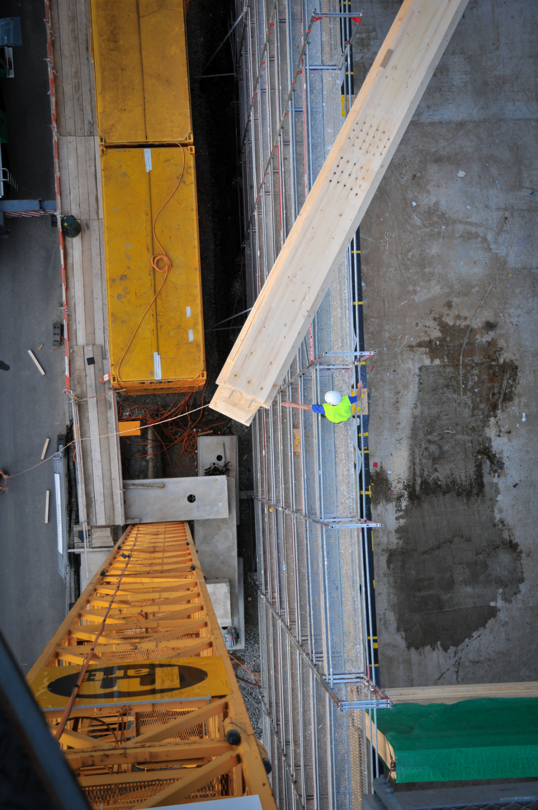 Dank dem guten Wetter war unser Montageteam sehr effizient und das Fachwerk wuchs. Montage der Hohlkastenträger über der Produktionshalle.