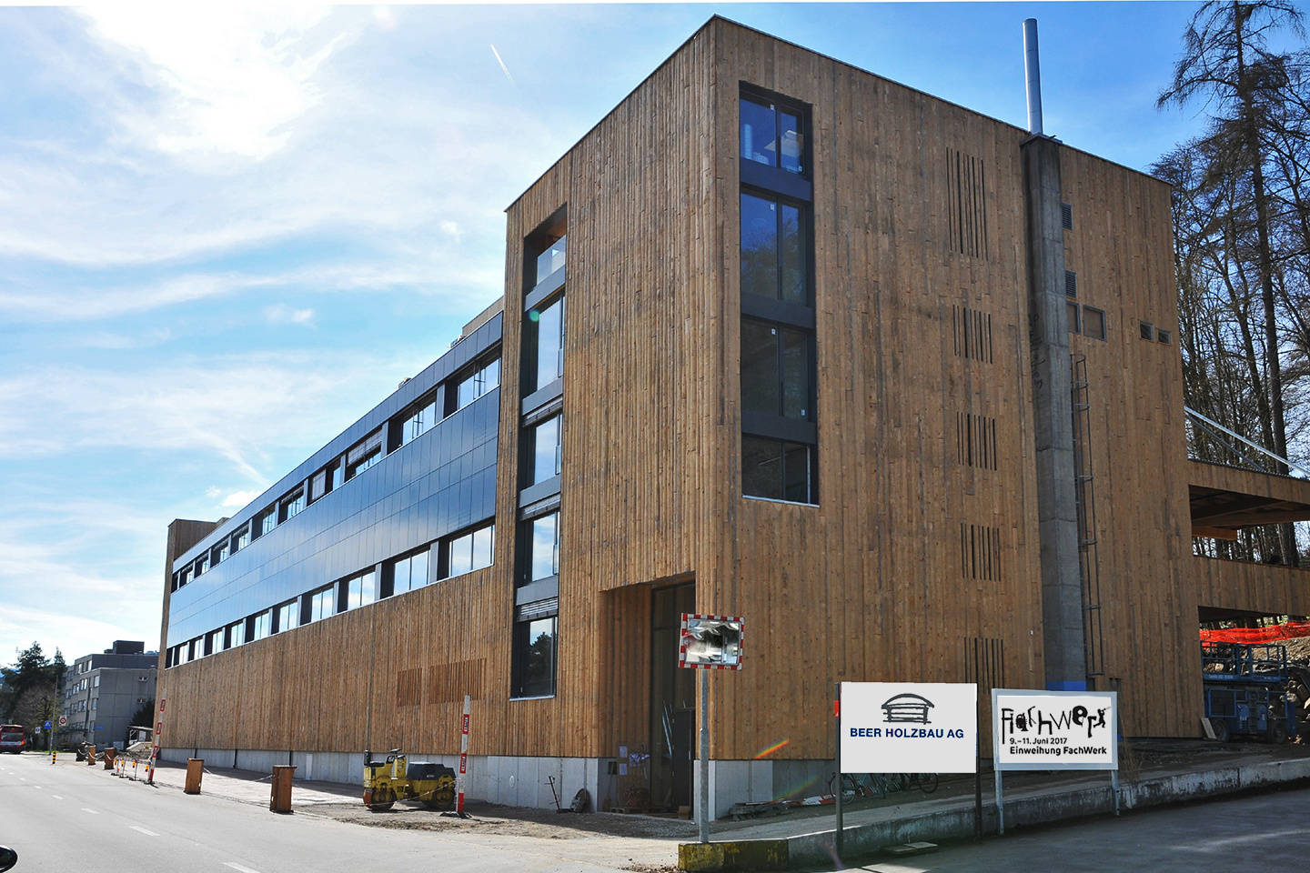 Der Eventraum im 4. Obergeschoss des FachWerks wurde erstmals für einen externen Anlass genutzt: Der Gewerbeverein BIO (Bolligen-Ittigen-Ostermundigen) organisierte das Oster-Apéro. Hinter dem FachWerk wurde ein «Findling», der beim Aushub auftauchte, in die Steinmauer integriert. In den Wohnungen im 4. Stock werden die letzten Arbeiten fertiggestellt. Die Aussenfassade der Attika-Wohnungen auf der Rückseite des FachWerks ist nun abgeschlossen. Bald sind die Wohnungen bereit für den Einzug.