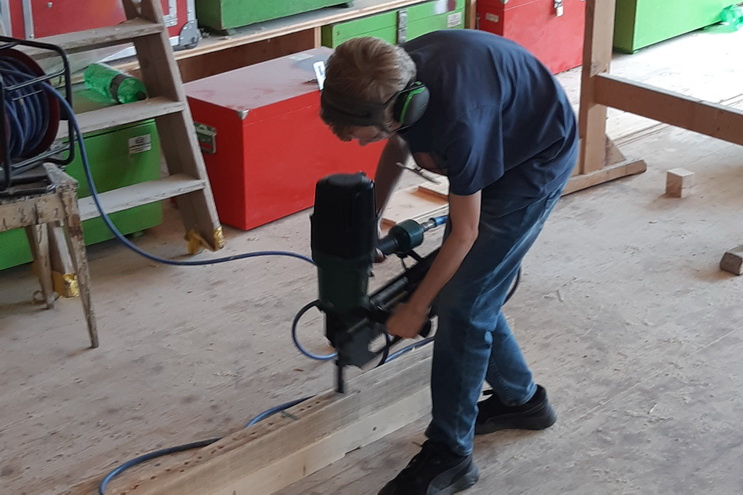 Bei uns in der Firma hat sich die siebte Klasse in zwei Gruppen aufgeteilt und sich in zwei Stunden mit dem Beruf Zimmerman / Zimmerin EFZ befasst. Dabei haben sie einen Rundgang gemacht und bereits die ersten Arbeiten ausgeführt. Die Schüler/innen hatten die Möglichkeit mit der Unterstützung unseres Lehrlingsverantwortlichen Roger Gloor und dem Lernenden Severin Schütz ein kleines Bienenhotel zu bauen. Das Interesse am Beruf konnte bei einigen Schülern/innen geweckt werden.