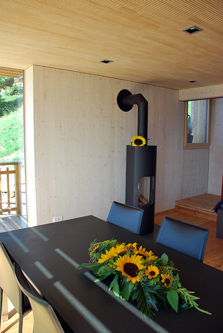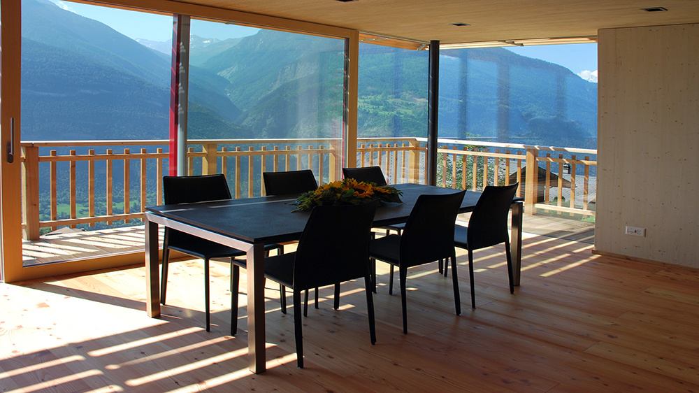 Gemütlich sitzend vor dem Feuer im Holzofen, beim herrlichen Ausblick auf die Walliser Alpen oder beim Spielen mit der Familie lernen Sie das Lebensgefühl in einem MINERGIE® Holzhaus eins zu eins kennen.